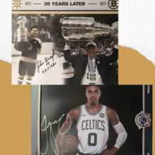 Two 8×10 Signed Photos – CELTICS: Signed Jayson Tatum photo with a certificate of authenticity. BRUINS: Signed 39 year reflection piece of Boston Bruins player John Bucyk.